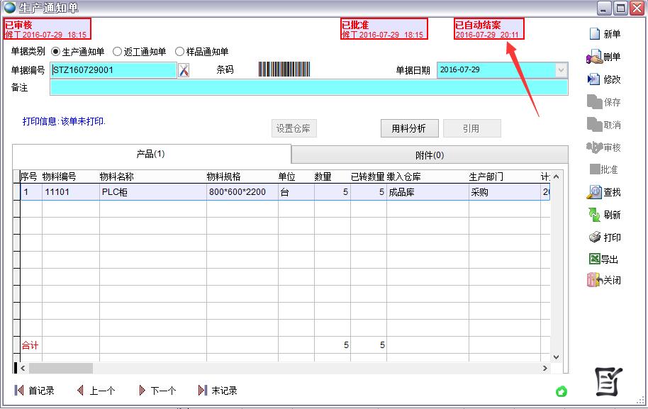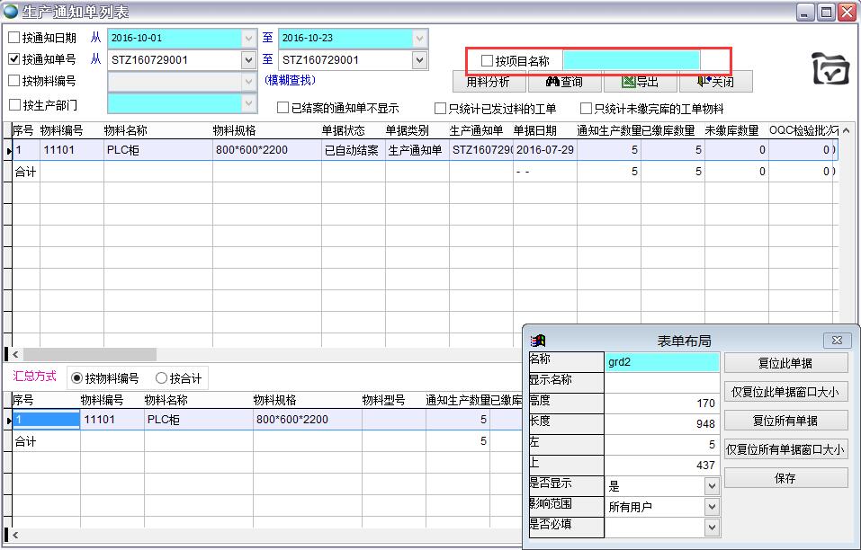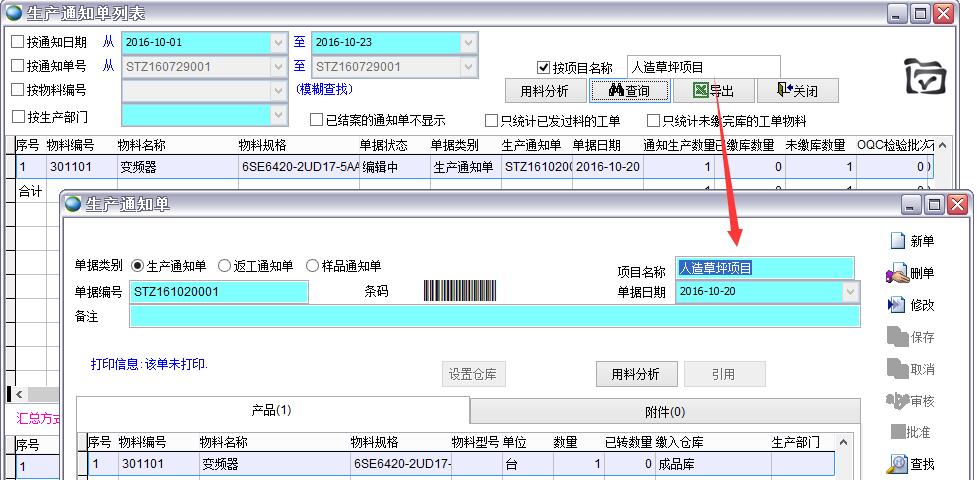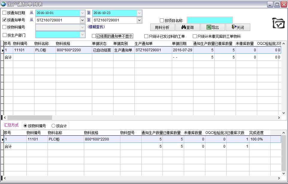 生產通知單列表會顯示所有符合搜索條件的生產通知單,并按要求進行匯總。