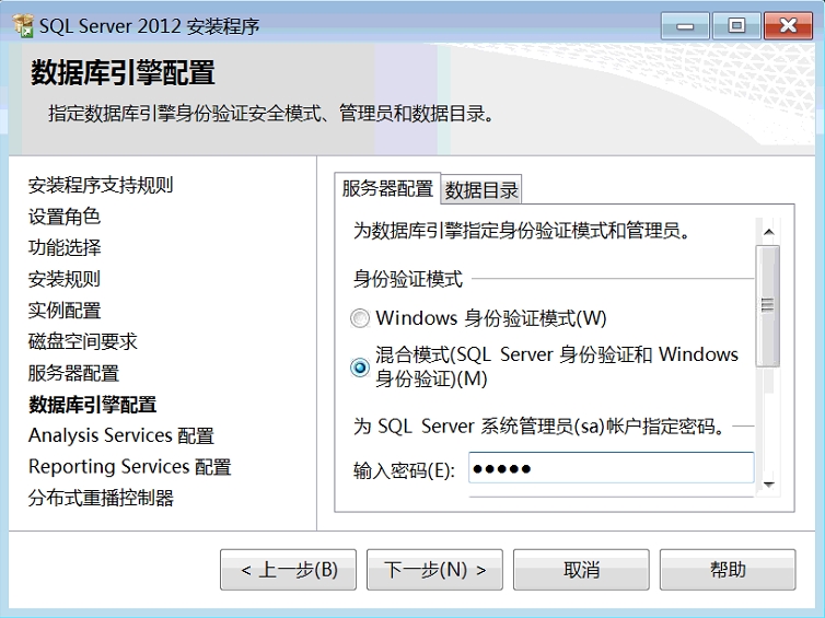 下一步之后,這個地方建議設置成混合模式,密碼自己設置;不要忘記了;這里我設置的是123,如果提示密碼強度不夠就修改密碼,比如Admin2020,然后點擊下一步