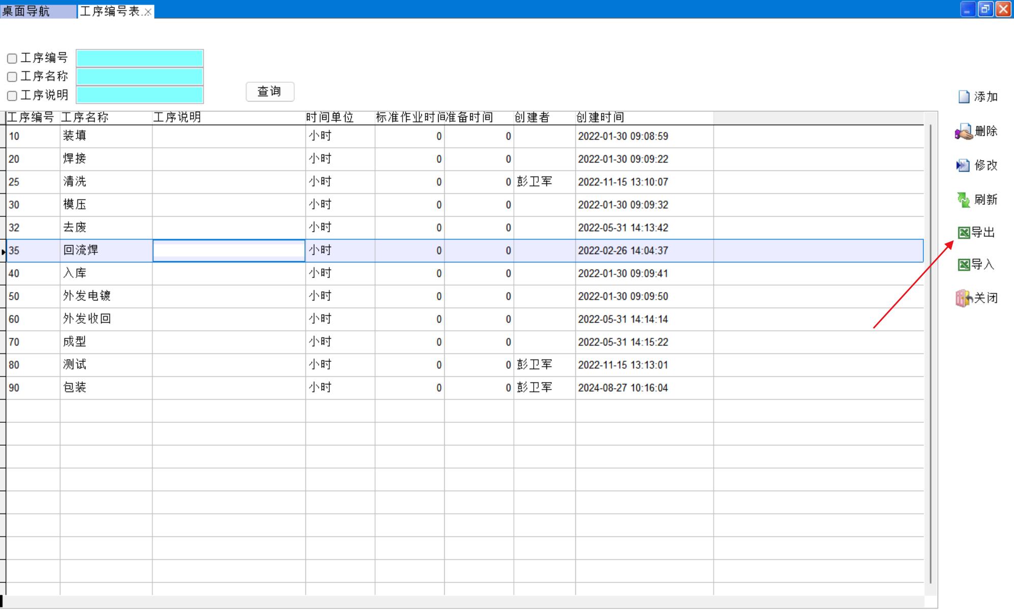 工序很多的話可以通過excel導入,導入模板在安裝目錄\數據導入模板\工序編號表.xls