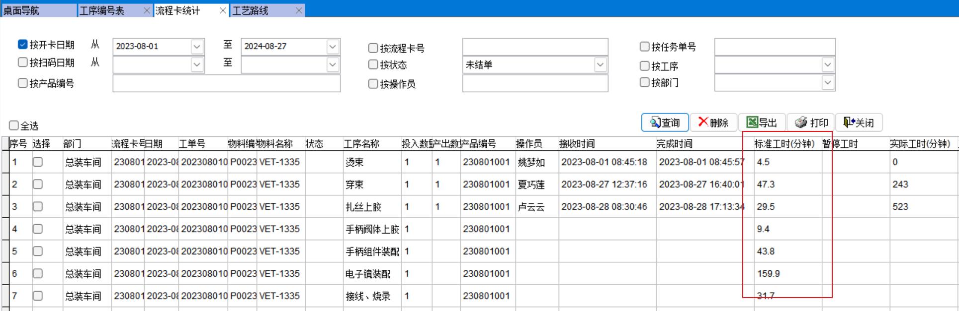 但實際上大多數工序在不同產品上的標準工時是不同的,那就在工藝路線中維護標準工時