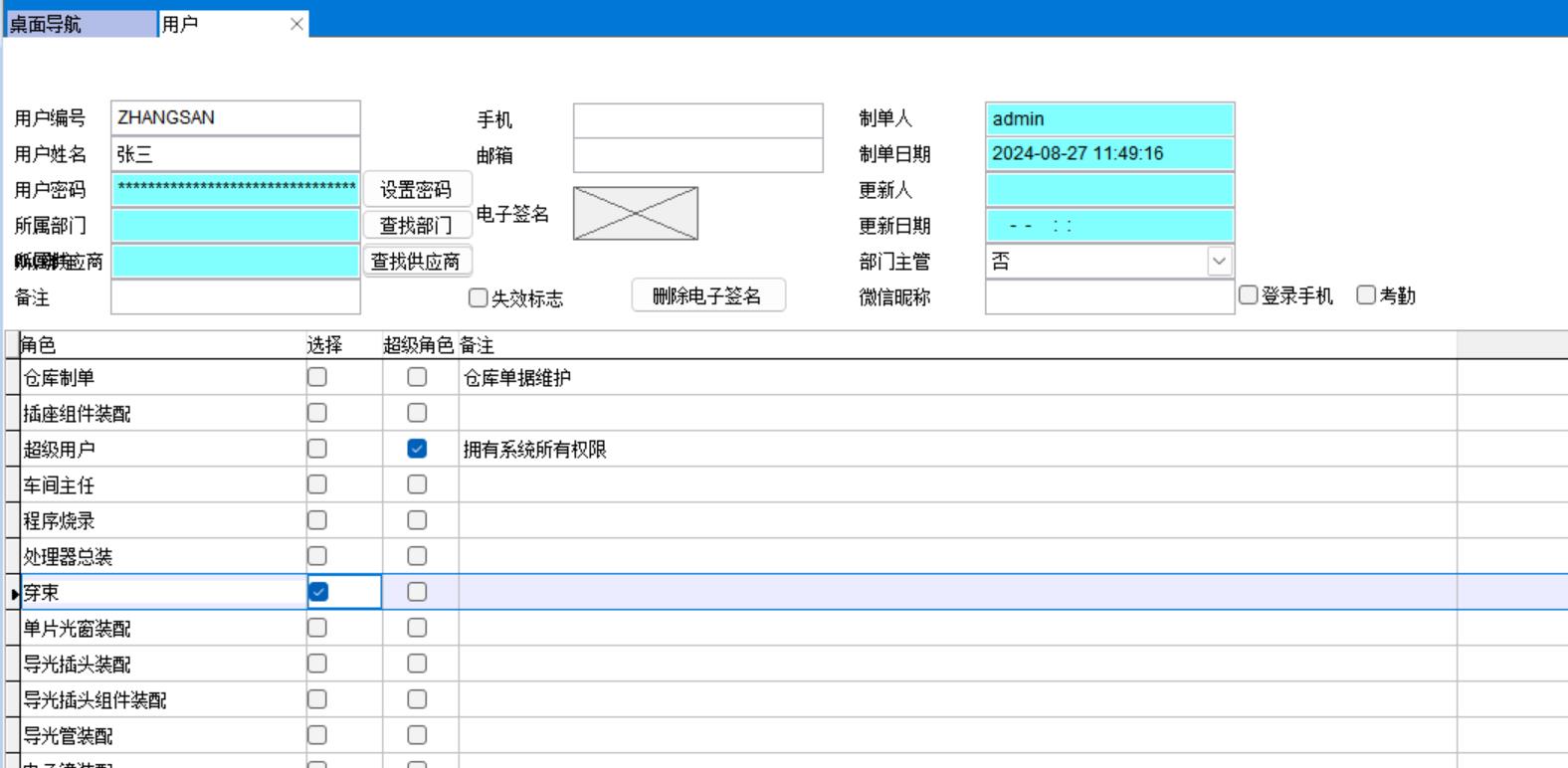 這樣張三李四可以完成燙束工序,王五沒有權限完成燙束工序,除非王五也選擇了燙束角色。