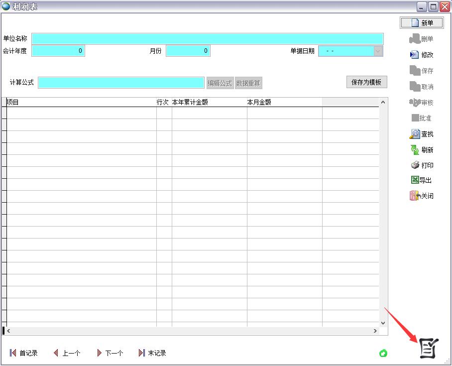 打開路徑:【主菜單】->【總賬】-> 【報表】->【利潤表】->右下角