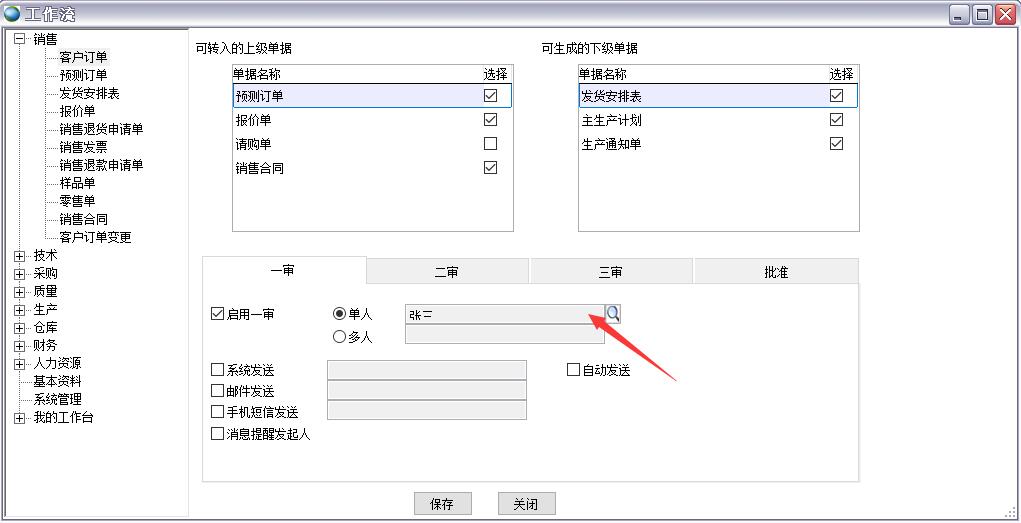 打開工作流,修改客戶訂單的工作流,指定一審人員是張三