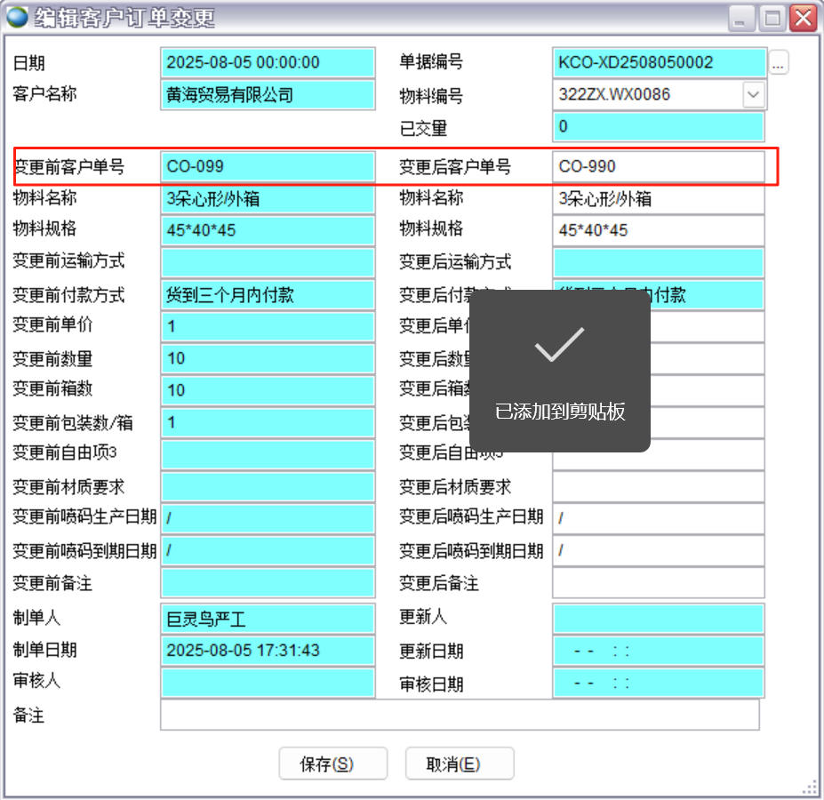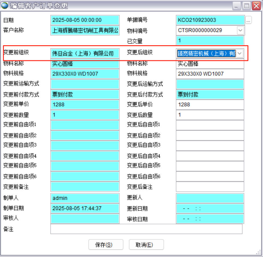 對(duì)客戶訂單中自定義的自由項(xiàng)也可以進(jìn)行變更