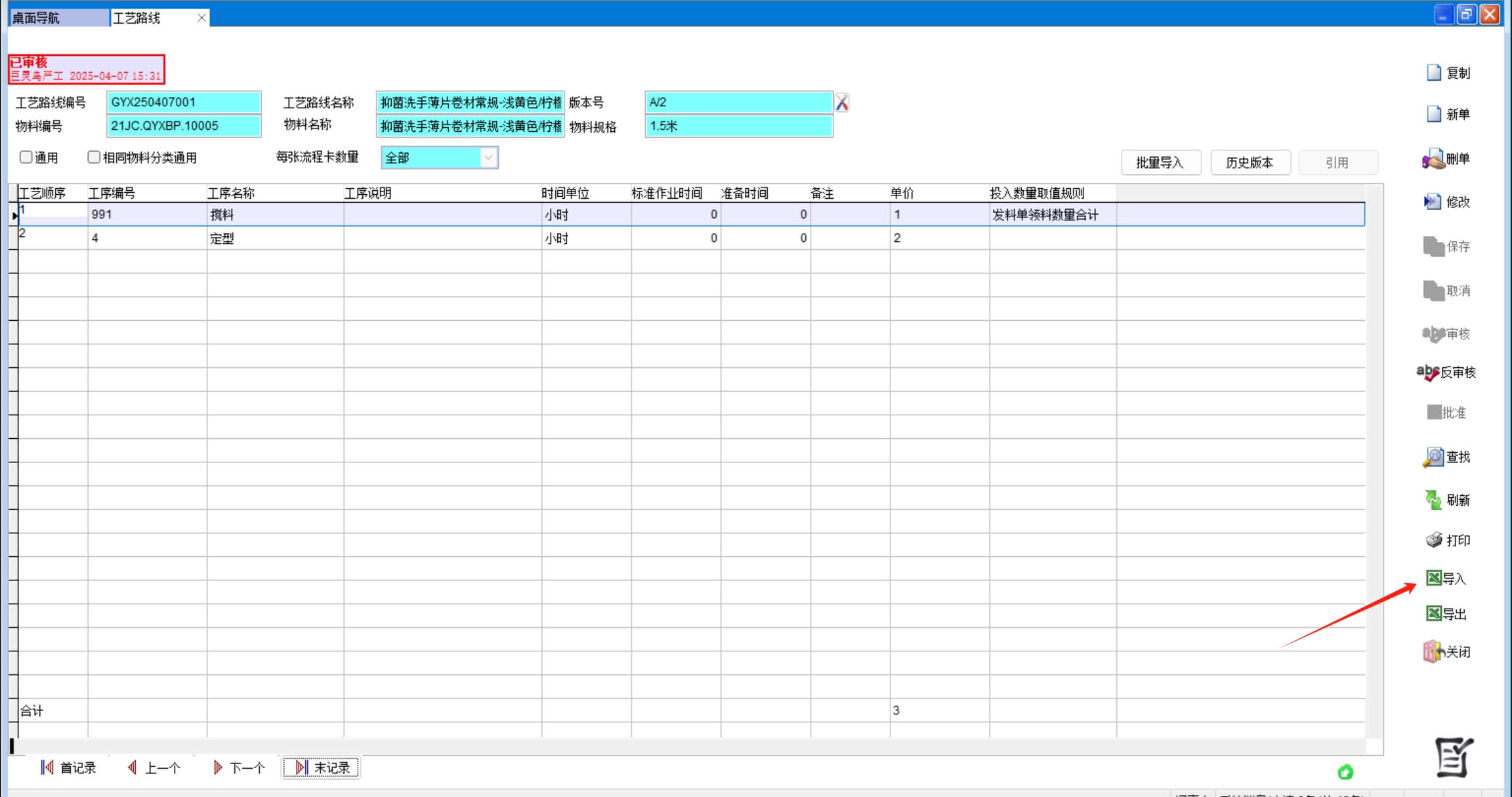 批量導(dǎo)入就是把所有工藝路線做成一個excel表格一次性導(dǎo)入。