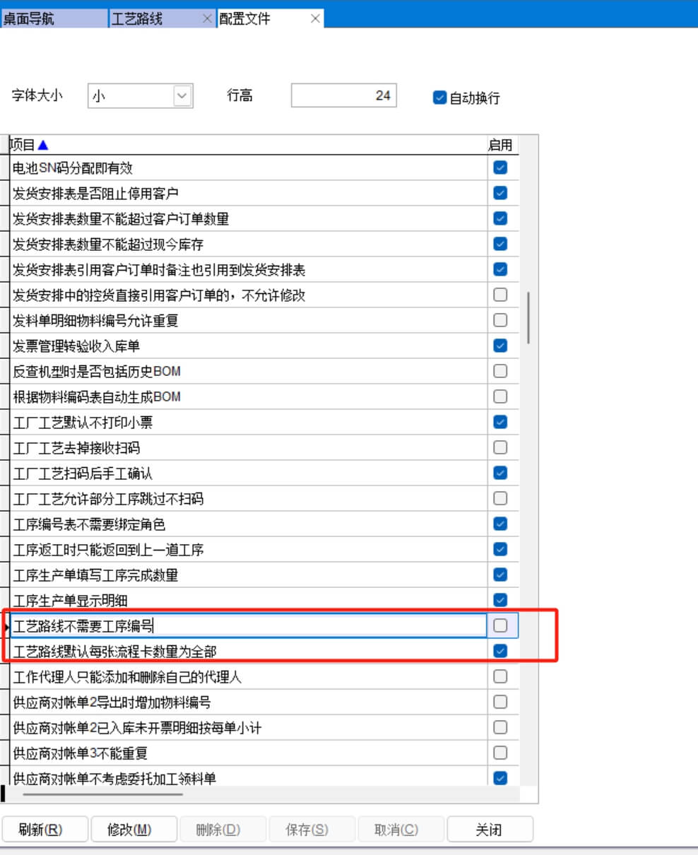 在配置文件中有兩個關(guān)于工藝路線的選項