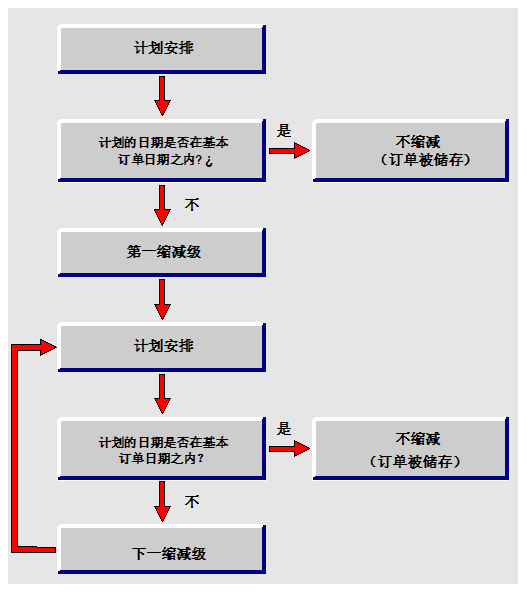 如果計劃中算出的提前時間大于基本日期之間的時間,系統將執行縮減措施來減少提前時間。