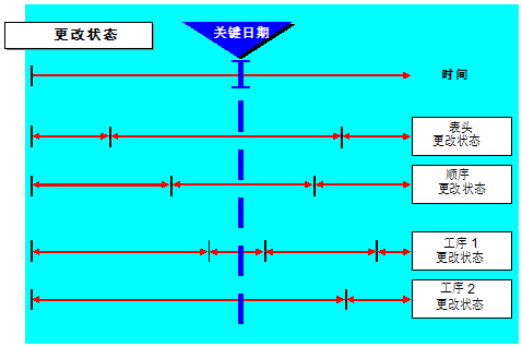 如果你刪除一個關鍵日期,所有的在該關鍵日期之前結束的更改狀態都被刪除。工藝路線或工藝路線對象是否有刪除標記,或者您是否以前已聯機地刪除它們,對關鍵日期之前的周期來