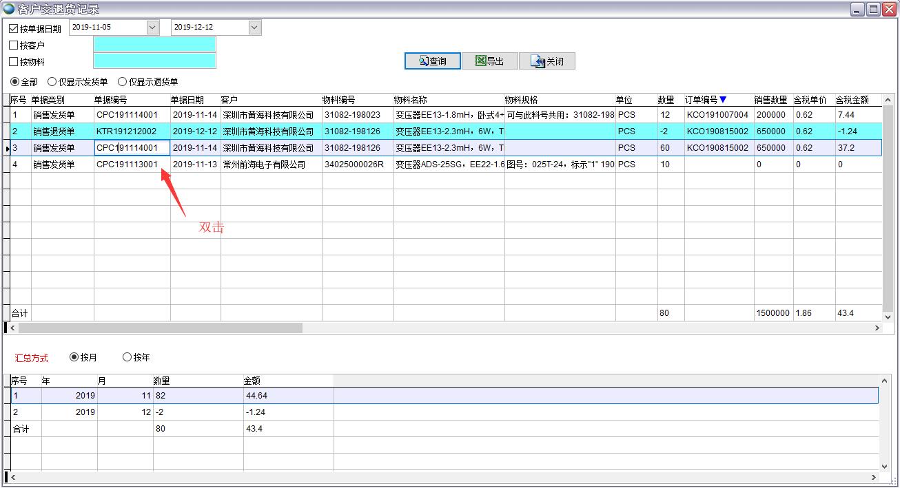 雙擊單據(jù)編號(hào)可以打開單據(jù)