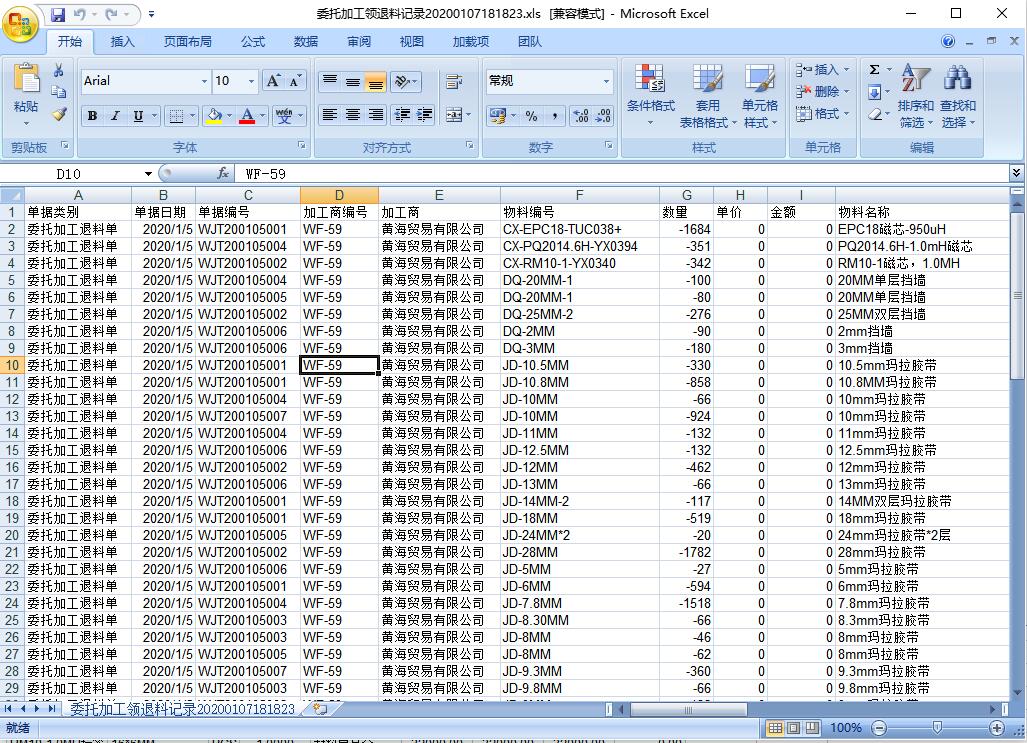 委托加工領退料記錄是委托加工領料單(發給委外加工商的材料)和委托加工退料單(從委外加工商退回的材料)的統計表,可以用作與供應商(委外加工商)進行對賬的依據。