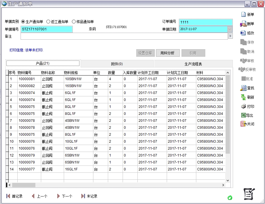 1、將生產通知單打印下發車間,待產成品完成后憑生產通知單入庫。