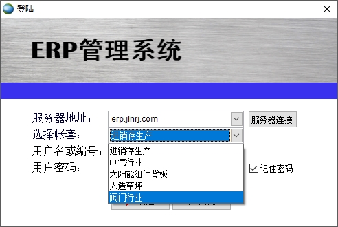 3、測試連接通過后重新登錄,用戶名:DEMO,密碼:1,選擇賬套:閥門行業