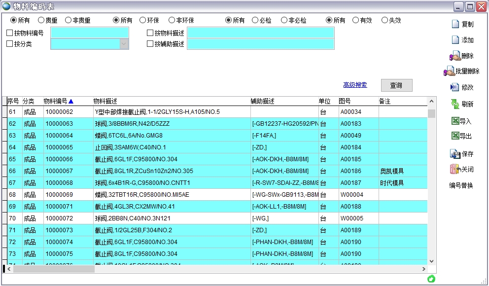 1、所有閥門成品都需要圖紙編號,在建立編碼時自動生成圖號。