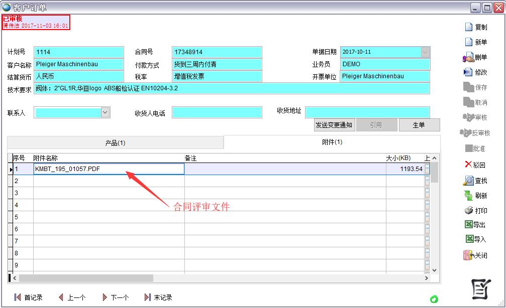 如果需要的話合同信息以及合同評審也可以走ERP系統