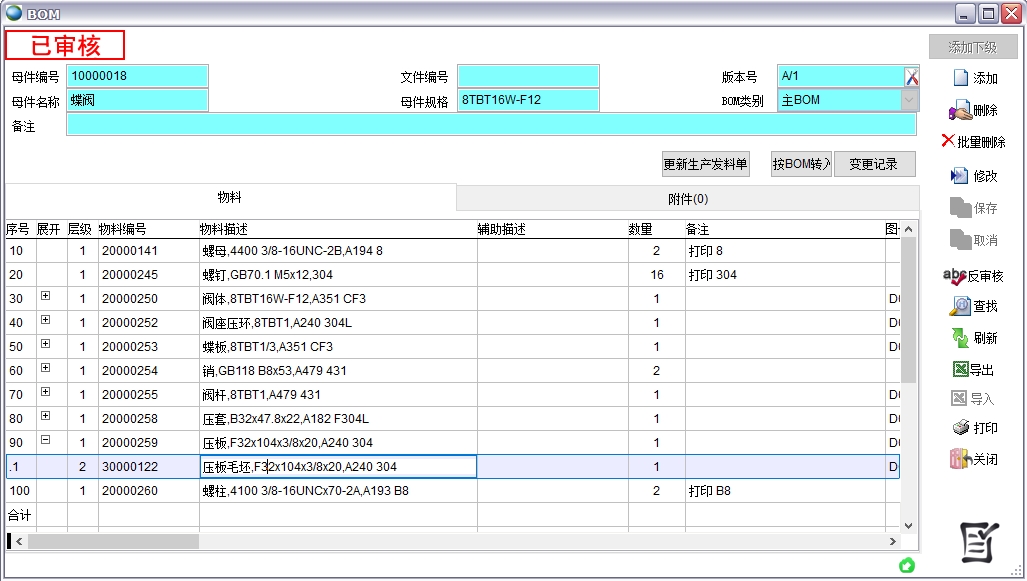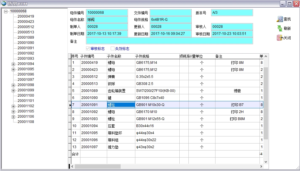 2、BOM變更后老版本會自動保存到歷史BOM。