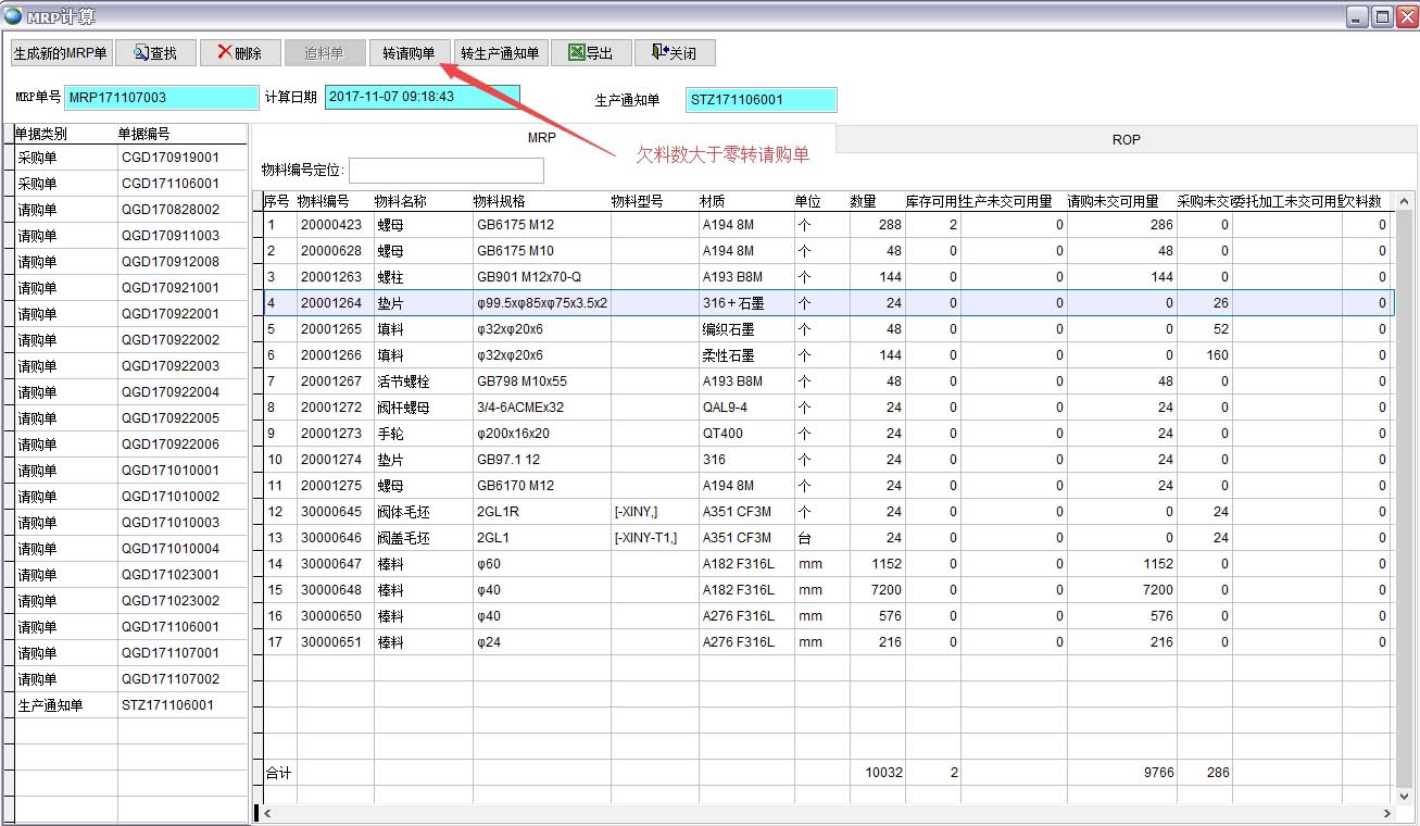 1、通過MRP計算,由系統自動計算缺料情況并將缺料數自動生成請購單。