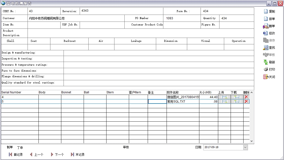 做過閥門行業的都清楚,手工做檢測報告是一項費時費力的工作,使用系統自動生成能提高技術部門工作效率