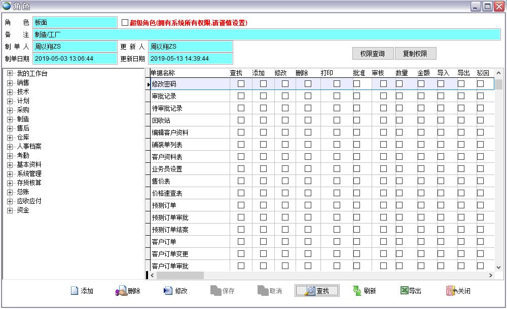 步驟一、在角色中建立每個工序,角色名稱就是工序名。每個工序建立一個角色,分配工廠工藝的完全權限。