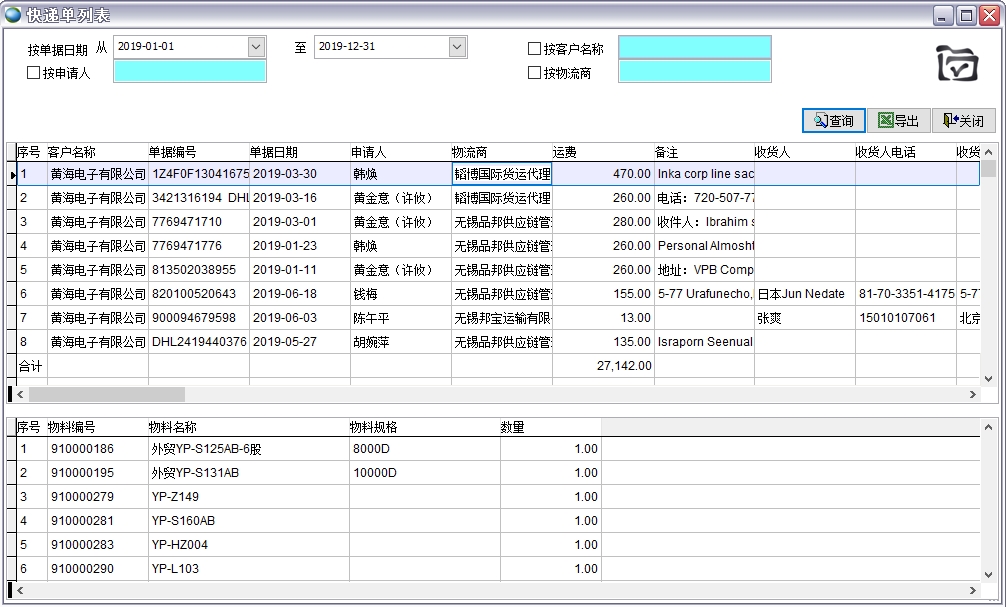 19年快遞費統計