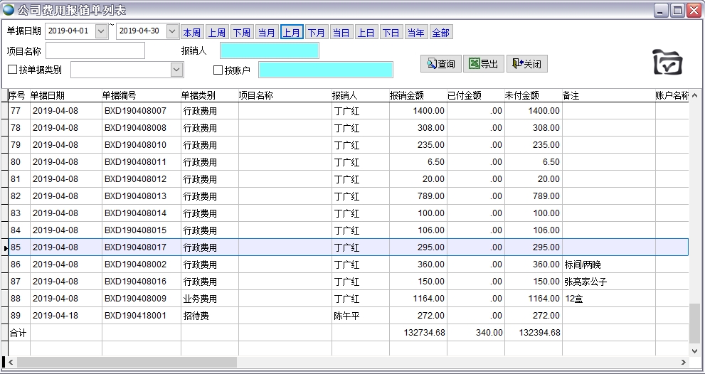 4月份費用報銷的統計