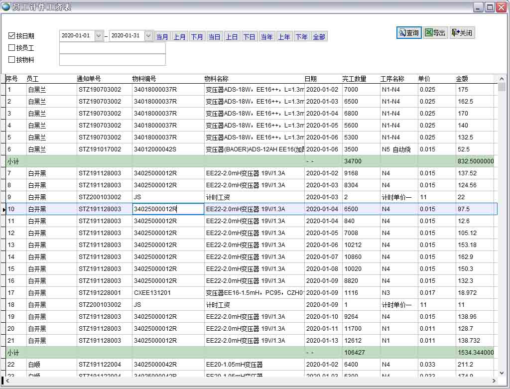 基于合理的工時計算設置的計件價格,并根據統計結果不斷進行優化調整。