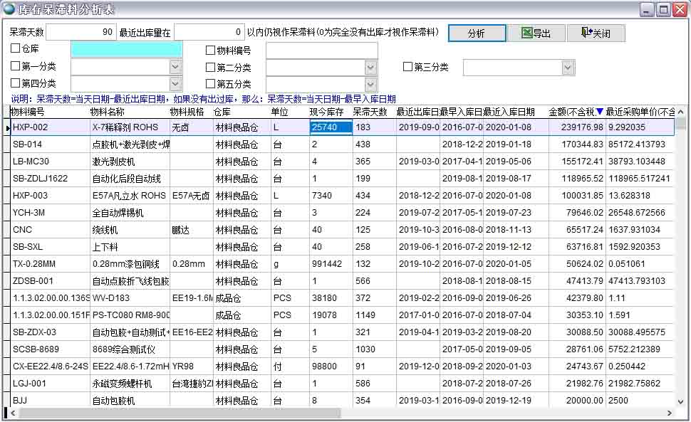 庫存呆滯料金額統計