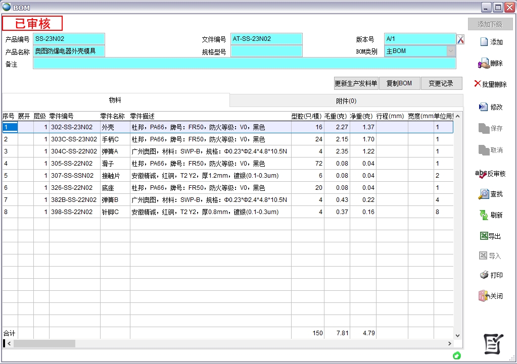 3.3、設(shè)計(jì)BOM錄入可以用EXCEL進(jìn)行導(dǎo)入,也可復(fù)制相同或相似的其它模具的BOM然后再進(jìn)行修改,以便快速方便的錄入BOM。