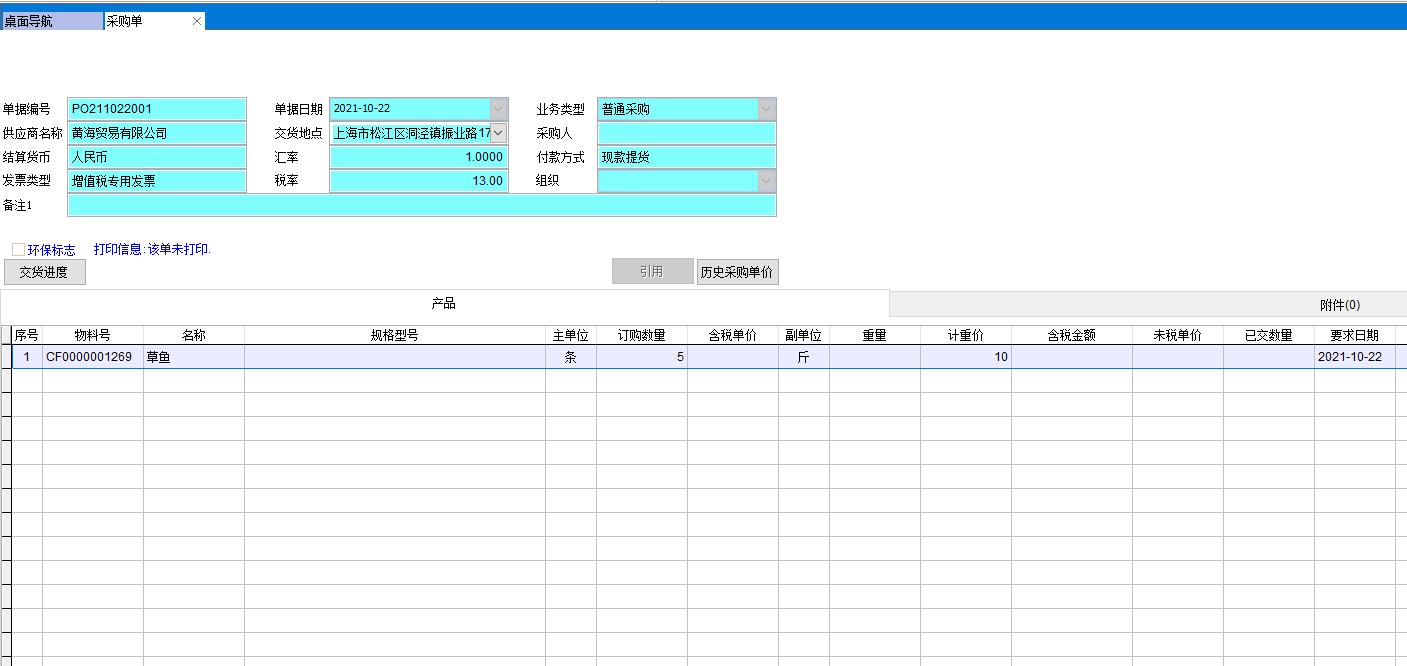 做采購單時如果是固定換算率,采購單位數量、主單位數量任一填寫一個即可。如果是浮動換算率,主單位數量和采購單位數量都要填寫,填寫后系統自動計算換算率。