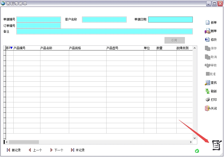 打開路徑:【主菜單】->【售后】-> 【售后維修單】-【右下角】