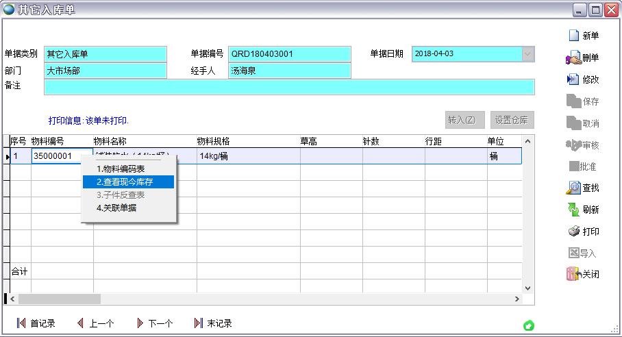 其它入庫單是指采購入庫、產成品入庫之外的其它入庫業務,如沒有采購單的物料入庫。其它入庫單一般手工填制。