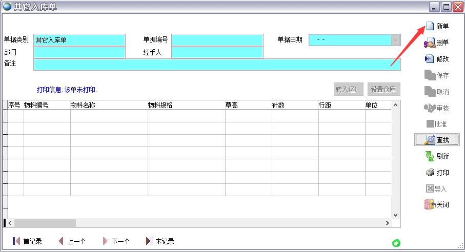 打開路徑:【主菜單】->【倉庫】->【入庫單】->【其它入庫單】