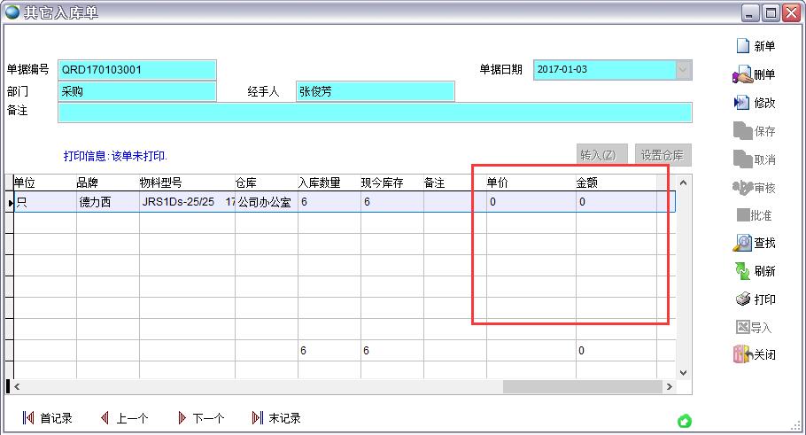 查看庫存 在物料編號中點鼠標右鍵可查看庫存 打印 可通過打印模板修改打印格式 導入 1、點新單 2、點導入 3、格式必須按安裝目錄\數據導入模板\其他入庫單.xls格式 4、導入后 入庫單價和金額 如果沒有出現單價和金額,可以在表體布局中設置 由于沒有引用任何單據,其它入庫單單價需手工填寫 也可以不直接在其它入庫單中填寫單價,比如其它入庫單是由倉庫制單,但倉庫不知道單價多少,倉庫只管數量 其它入庫單制單后,由財務在入庫單金額維護中補上單價