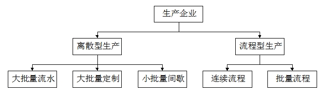 本方案基于如下NC對(duì)生產(chǎn)企業(yè)類型的劃分,旨在解決“大批量流水”這類生產(chǎn)企業(yè)的產(chǎn)供銷一體化。
