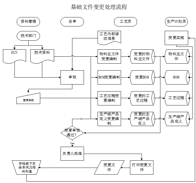 審核員:審核技術(shù)部門下發(fā)的變更統(tǒng)治及相關(guān)資料,下達(dá)變更編制任務(wù);審核變更編制結(jié)果;批準(zhǔn)變更。