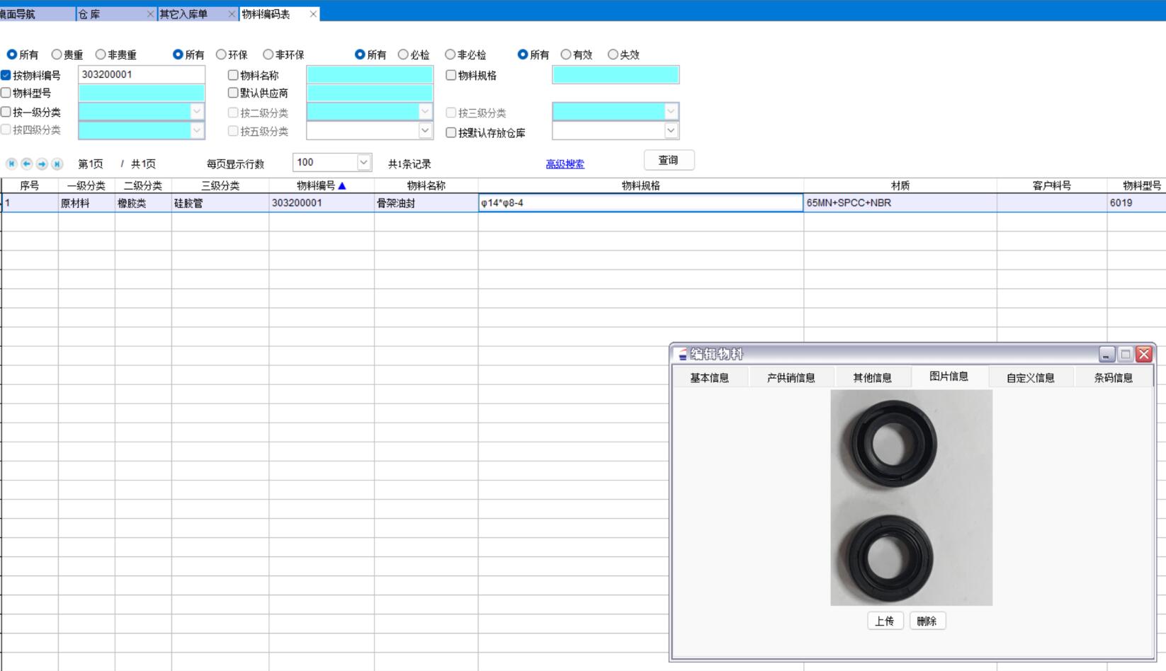 完成設置后在客戶訂單、請購單、采購單、銷售發貨單、物料編碼表、現今庫存中都可以直接看到圖片