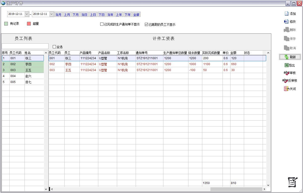 管理要求:所有工序通過掃碼完成,入庫也需要掃碼,對工序進行計件統計作為計件工資計算的依據