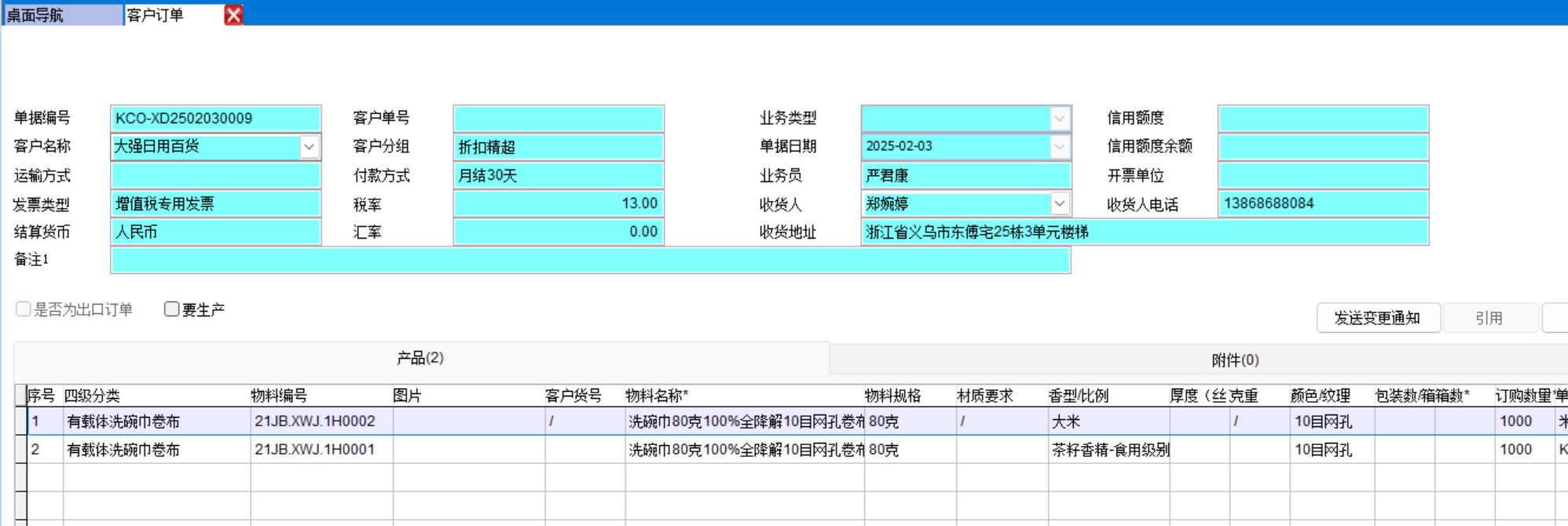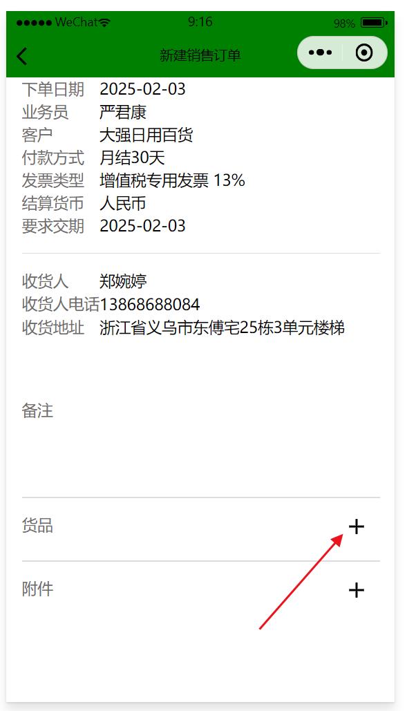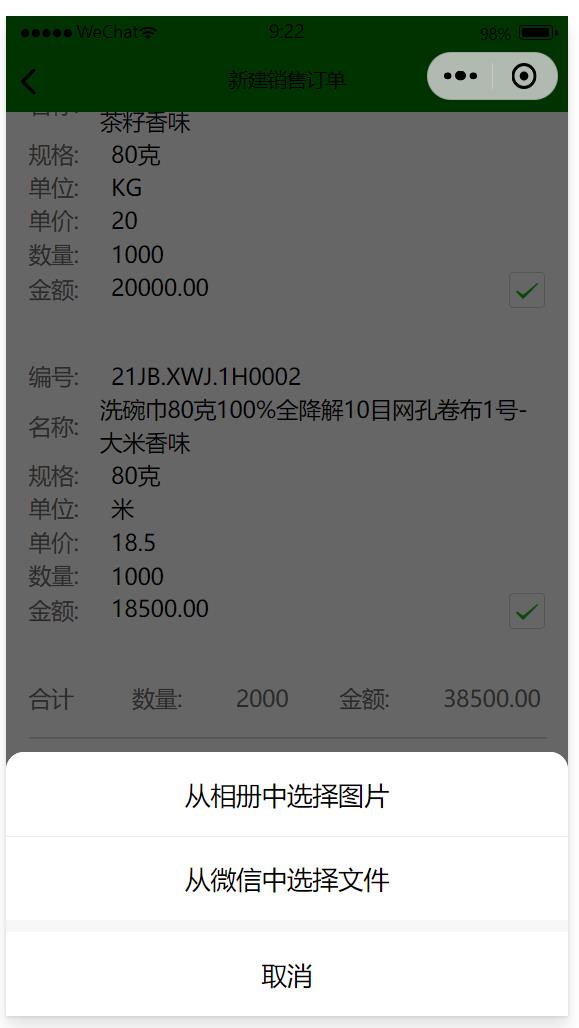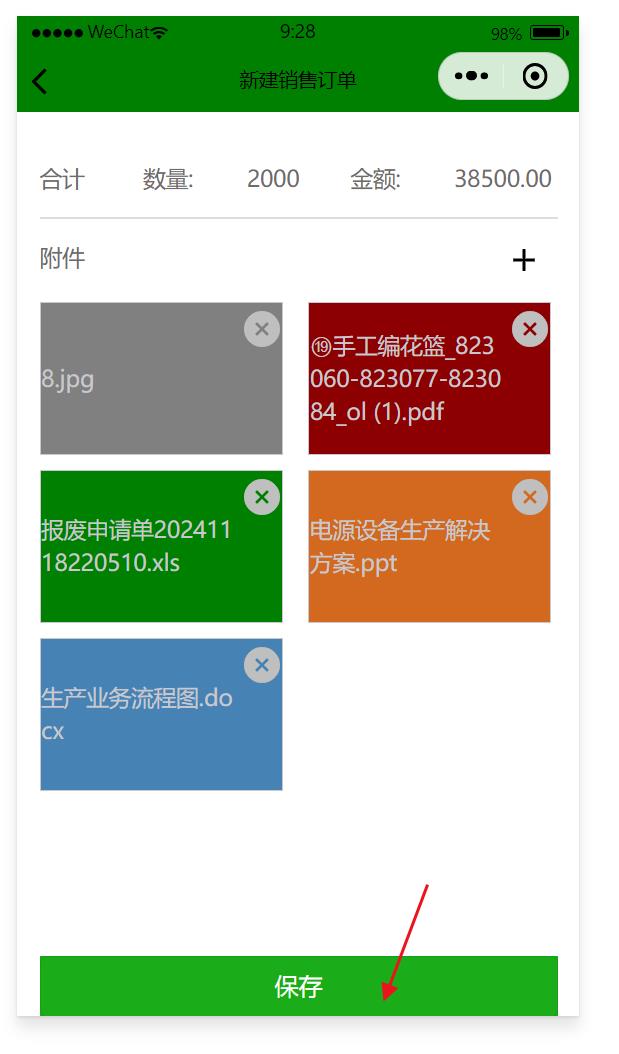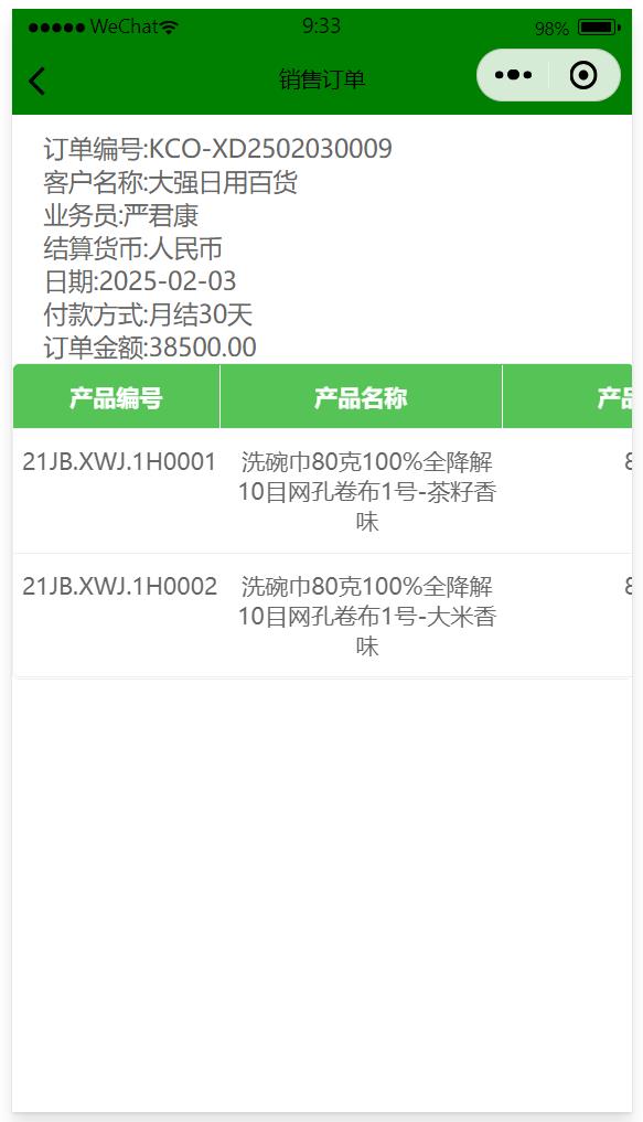 7、點保存就能保存該銷售訂單,數據會自動傳遞到ERP系統中,如果在微信小程序中沒有看到剛保存的銷售訂單,可以等30~60秒后再查詢看下