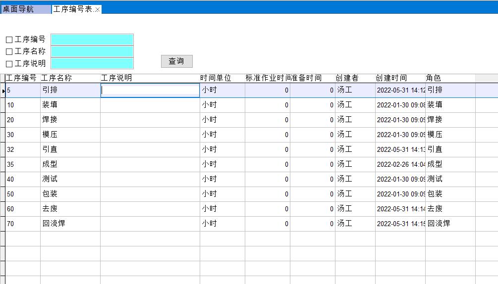 每個工序對應一個角色,這么做的目的是當用戶登錄手機端時,后臺就會綁定對應的工序,掃碼報工后該工序會更新狀態