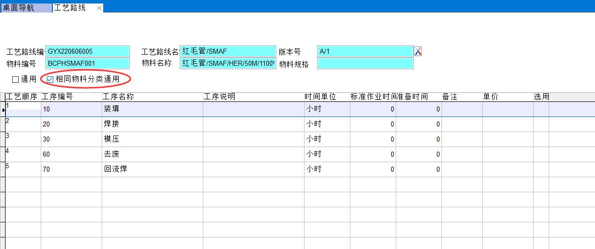 可以為每個產品建立一個工藝路線,也可以一個類別的產品建立一個工藝路線
