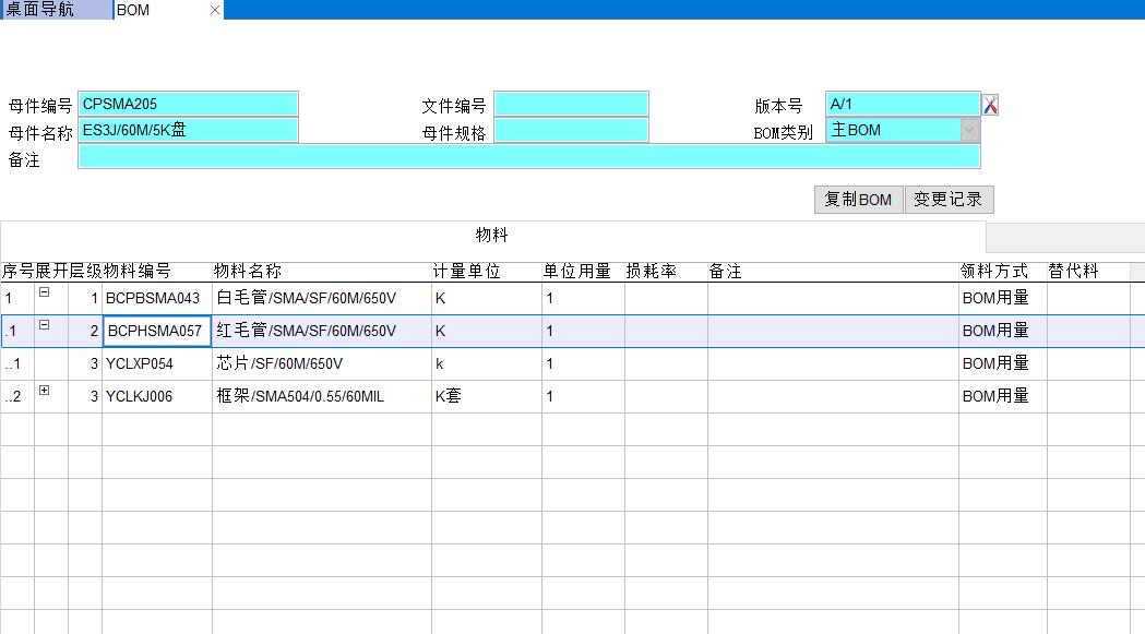 成品、半成品都要建立BOM