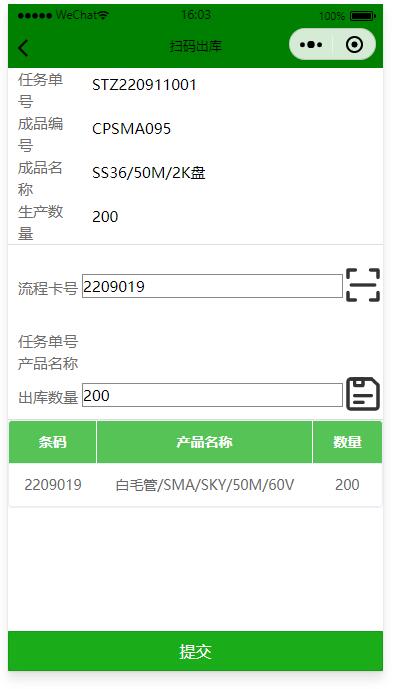 掃流程卡,再選剛才的成品生產(chǎn)任務(wù)單,這樣就講該流程卡與成品進(jìn)行了綁定