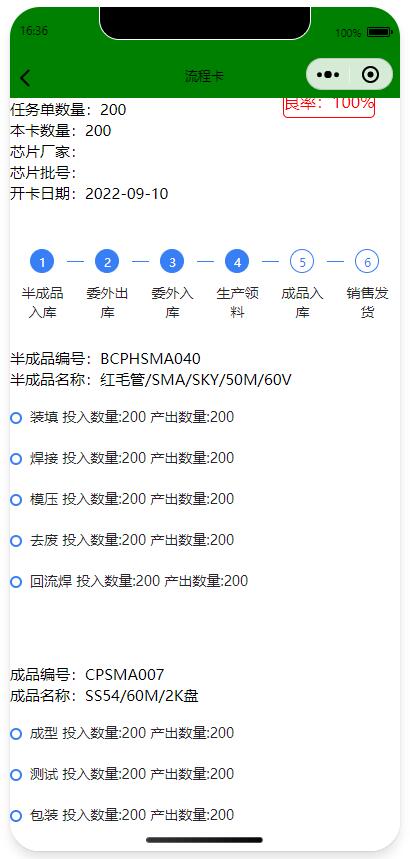 領(lǐng)料單完成后該流程卡就會出現(xiàn)成品的工序