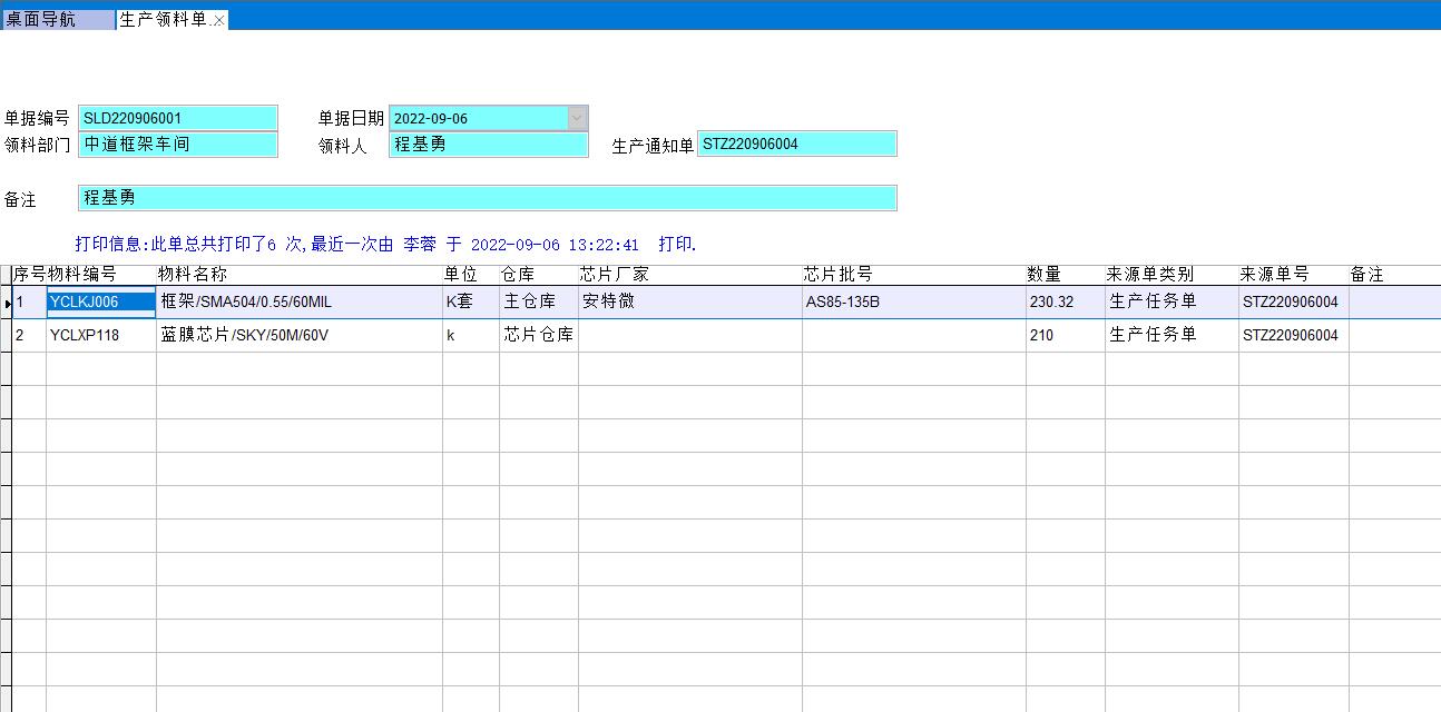 比如前面提到的晚上加班領料的問題,領料人員領料后要將領料憑證放到倉庫管桌面,倉管員上班后在ERP系統中就是銷賬。