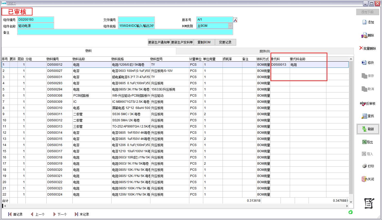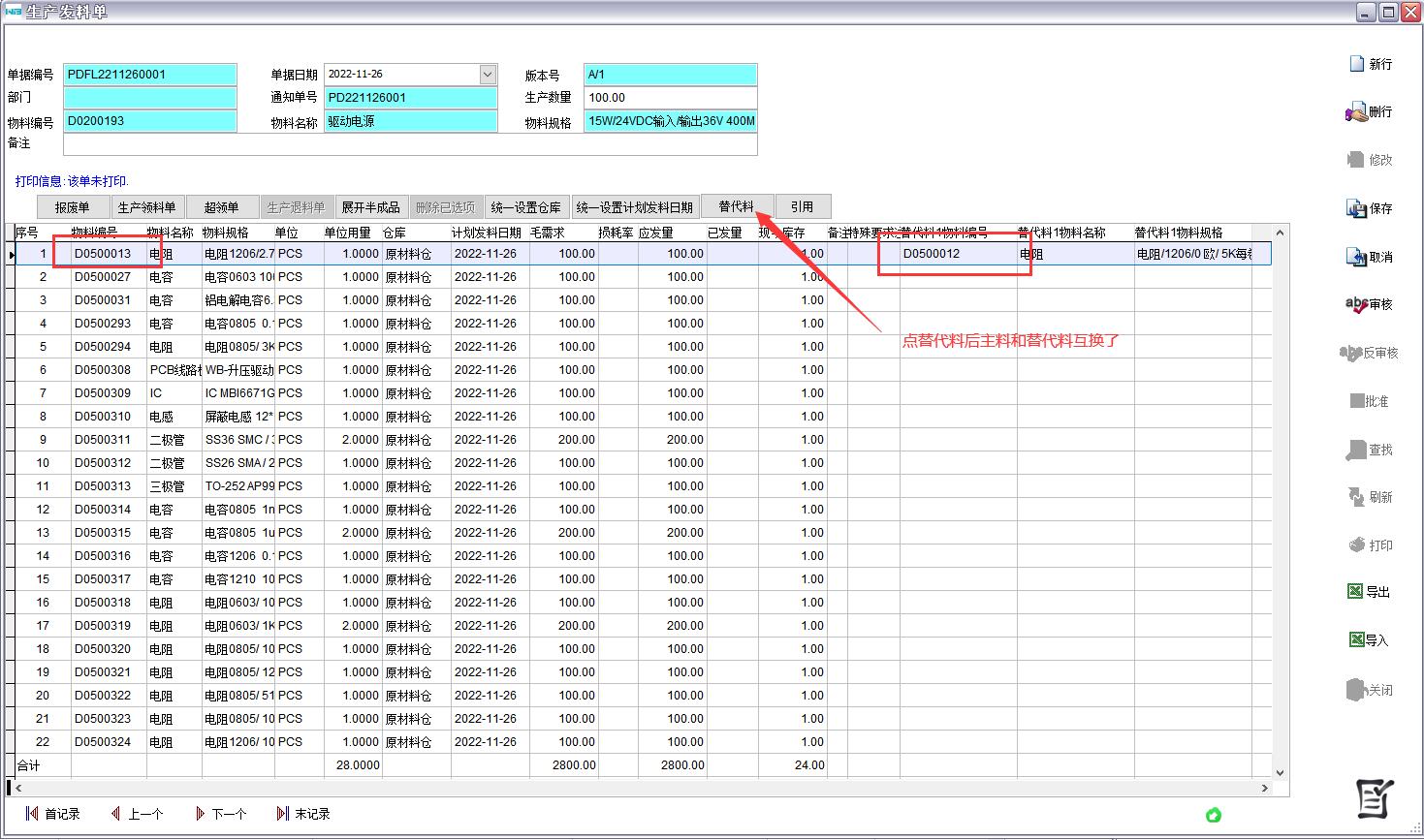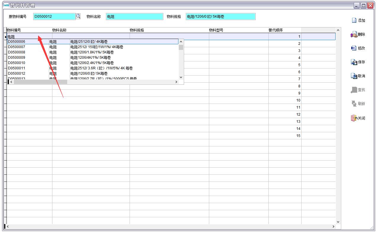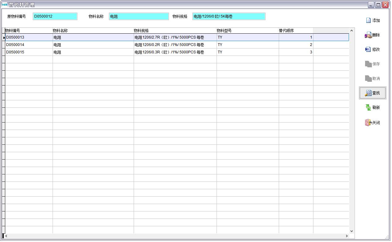 打開路徑:【主菜單】->【技術】-> 【替代料管理】