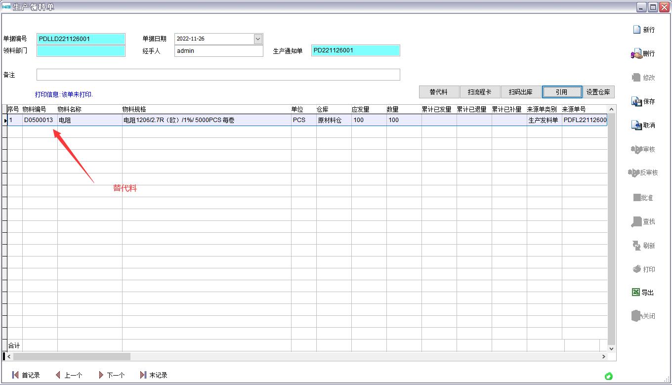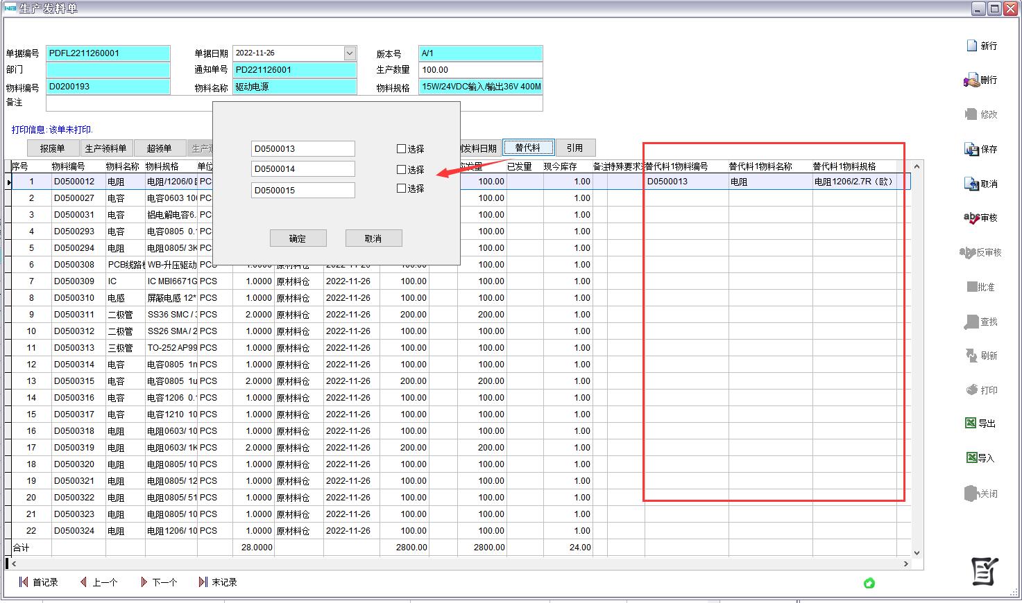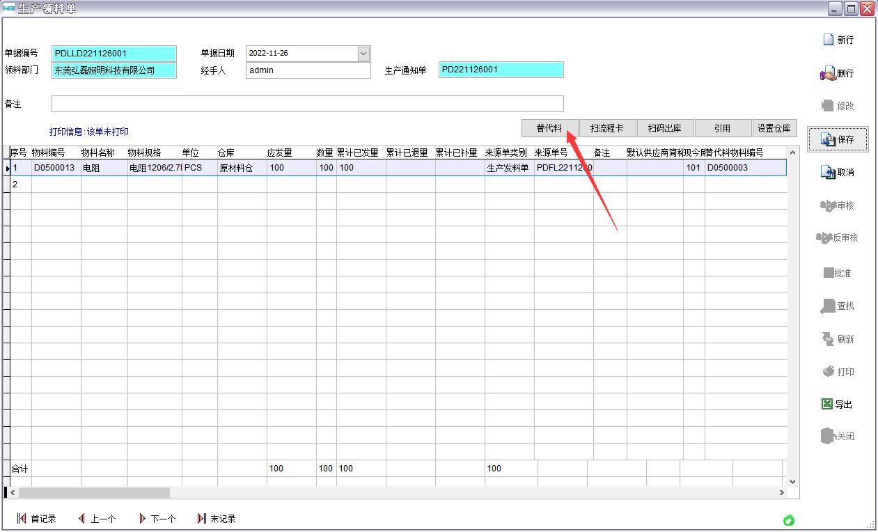 打開路徑:【主菜單】->【技術】-> 【替代料管理】