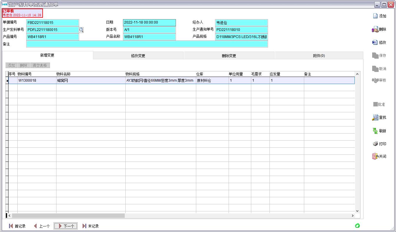 生產發料單變更通知單分新增變更、修改變更、刪除變更