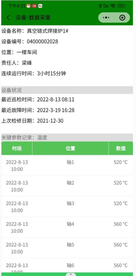 這是我們通過手機(jī)端可以實時查看所有數(shù)字化設(shè)備運行參數(shù),方便我們管理人員隨時了解車間設(shè)備情況