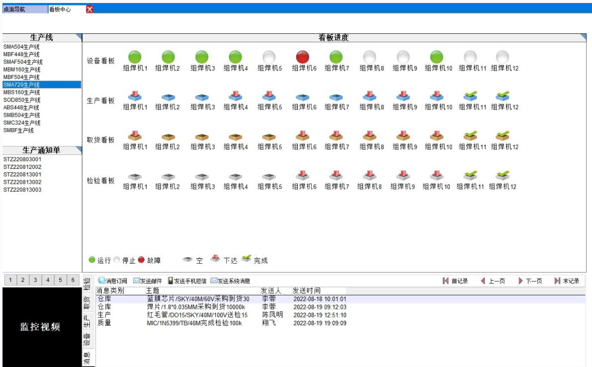 這是我們在PC端的MES系統(tǒng)中看到的設(shè)備實時狀況,這個設(shè)備看板圖實現(xiàn)了ERP系統(tǒng)、MES系統(tǒng)、監(jiān)控視頻、手機(jī)設(shè)備巡檢等多系統(tǒng)多設(shè)備的互聯(lián)互通,也就是組建屬于我們公司的小型物聯(lián)網(wǎng)