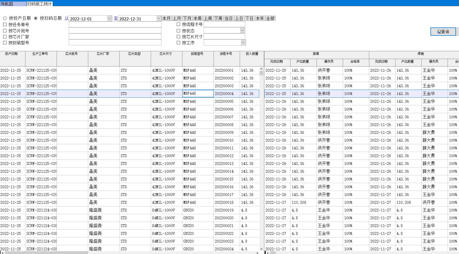 這是在MES系統(tǒng)中顯示的員工掃碼報工的結(jié)果