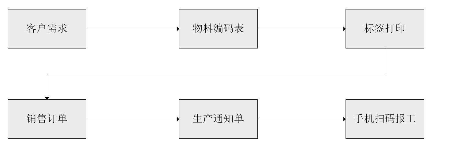 3、所有產品有5個工序需要掃碼:下單、生產、完工入庫、發貨、結算,每個工序完成后掃標簽條碼報工,掃碼的目的是做個標記,方便隨時了解產品進度
